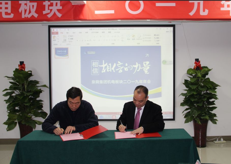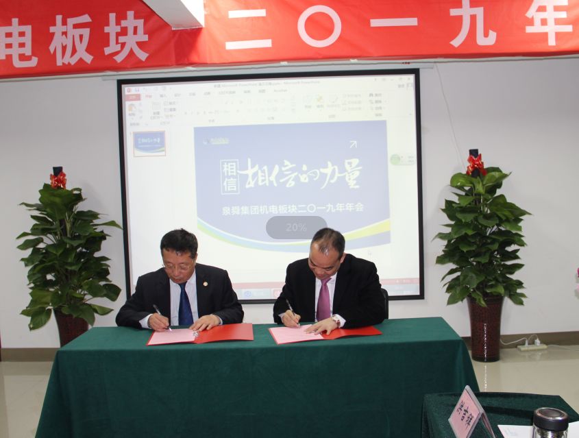 会上,公司董事长吴水林先生分别与泉舜工程总经理李志强先生、泉舜流控总经理孟建伟先生签订了2019年营销管理目标责任书,为泉舜集团机电板块2019年的工作制定了新的奋斗目标,为全员指明了前进的方向。