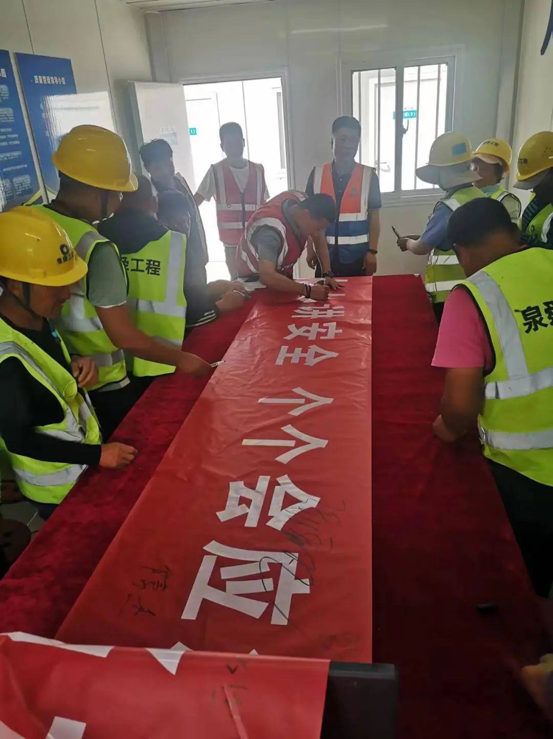 安全生产第一步,各项目部纷纷开展启动仪式,通过安全签名、安全宣誓等形式,激发员工参与热情。项目部还悬挂安全生产主题横幅,全方位宣讲安全生产月的重要意义,提升生产参与者的安全意识。