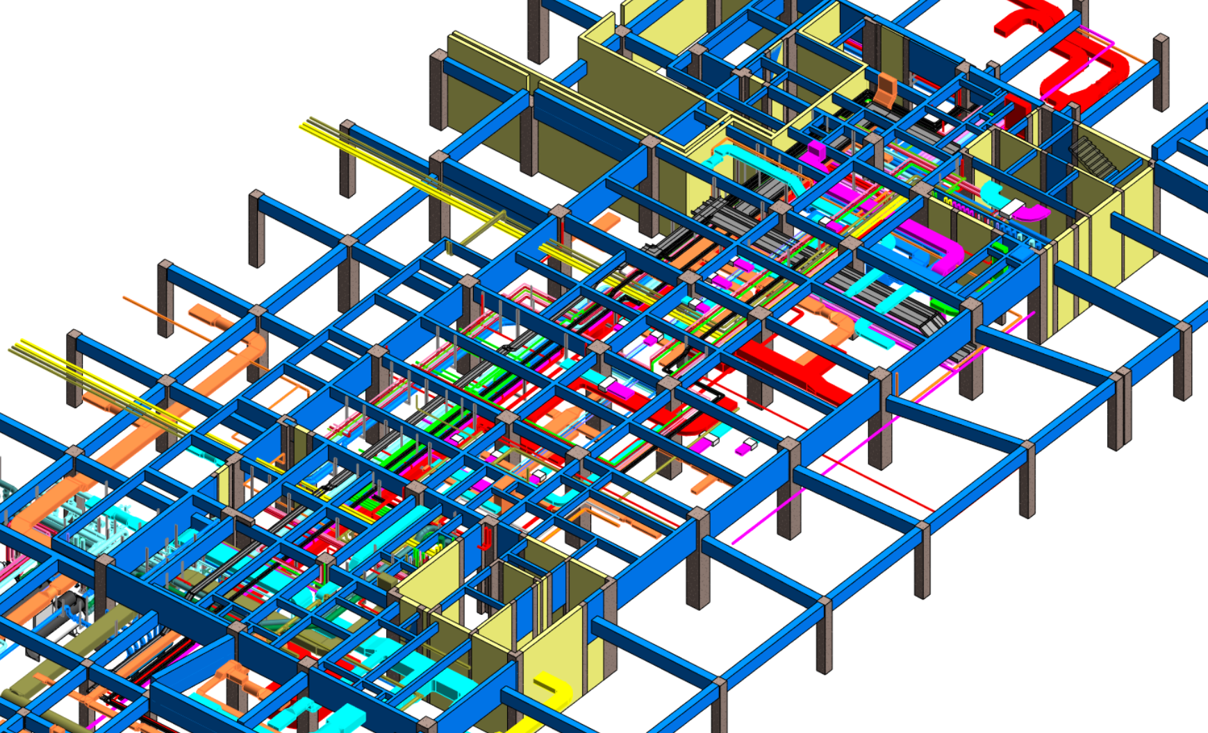 BIM管线综合布置技术是依靠计算机辅助制图手段,在施工前对机电安装工程进行模拟施工完成后的管线排布情况,即在未施工前先根据施工图纸在计算机上进行图纸“预装配”。经过“预组装”,深化设计人员可以直观地发现设计图纸上的问题,尤其是发现各专业之间设备管线的位置冲突和标高重叠,并进行调整、修改,保证施工可执行的技术。