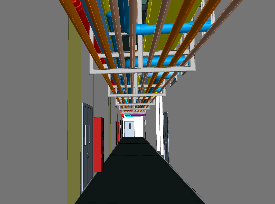 ◆综合支吊架设计:机电安装过程中,众多系统管线交错布置,若所有施工队各自为政、只考虑各自负责专业管线施工,缺乏统一协调管理,必然导致现场凌乱无章,将严重影响施工质量。利用BIM技术设计综合支吊架的应用可以有效地解决这个问题。