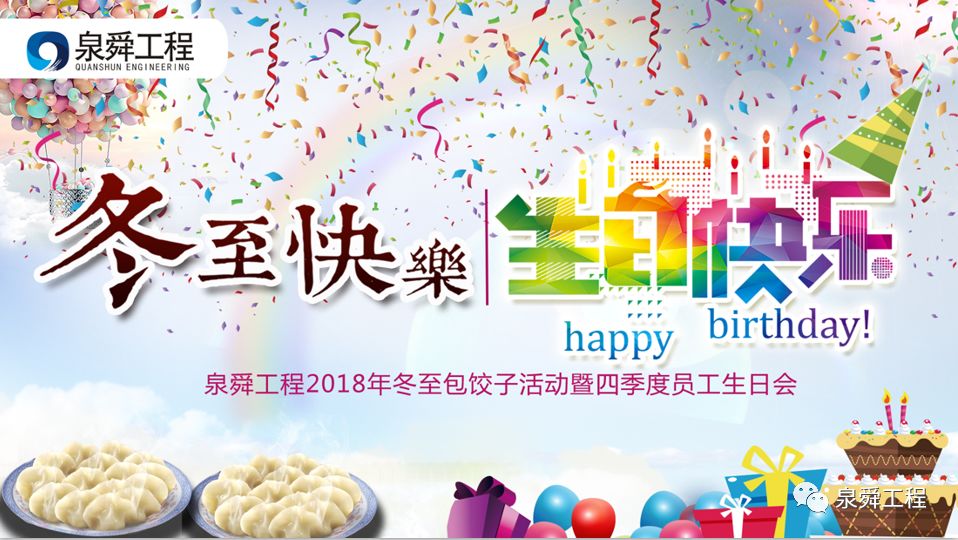 冬至,是中国一个非常重要的农历节气和传统节日,至今仍有不少地方有过冬至节的习俗。冬至俗称“冬节”、“长至节”、“亚岁”等。今天,泉舜工程又迎来了一年一度的“冬至包饺子活动暨四季度员工生日会”。 ···