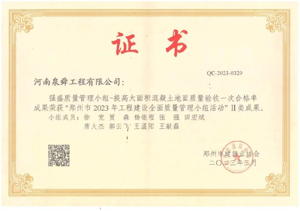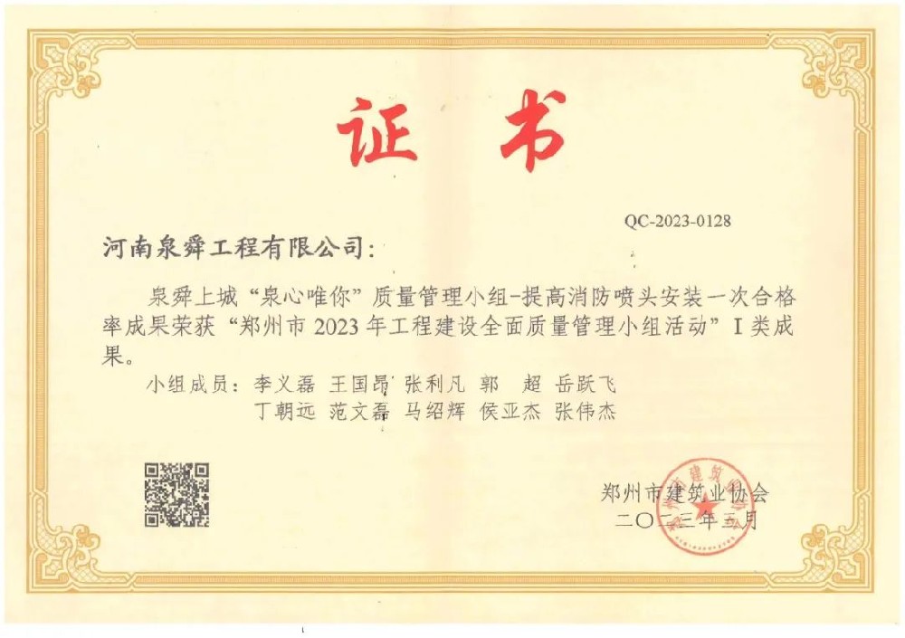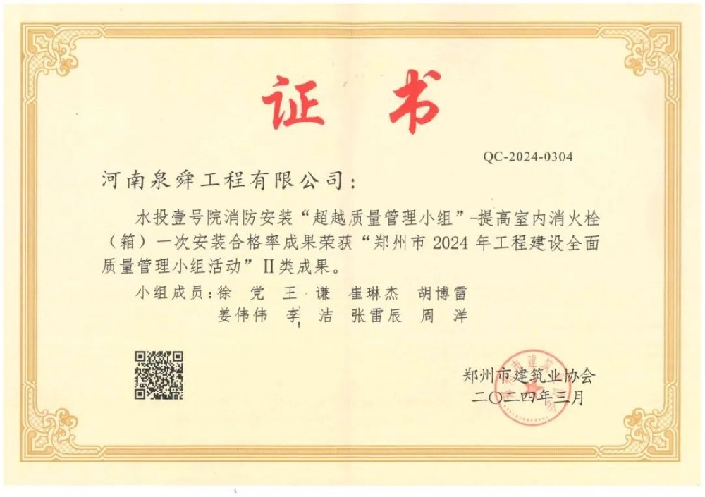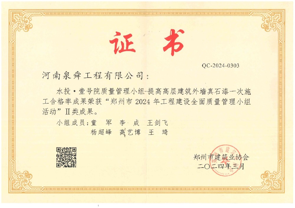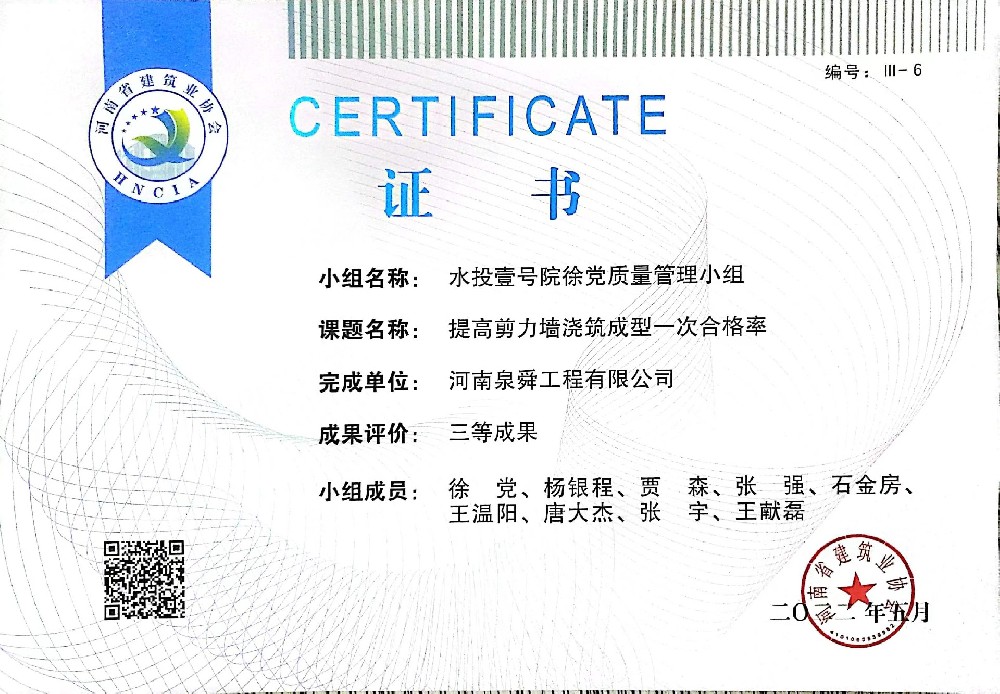 • 水投壹号院徐党质量管理小组省级三等成···