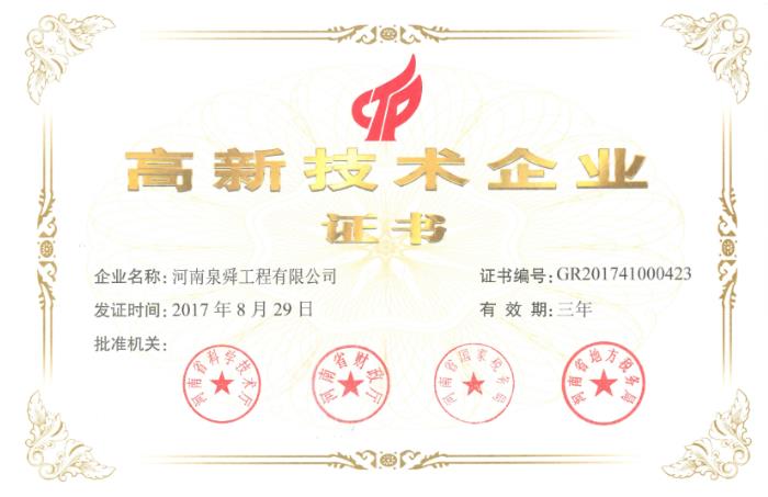 一年的耕耘,迎来了集中收获的季节。近期,泉舜工程喜事连连,提前接收了一大波新年礼物。8月29日,泉舜工程顺利获批由河南省科学技术厅、河南省财政厅、河南省国家税务局、河南省地方税务局联合评定的省级高新技术企业。作为高新技术企业中屈指可数的工程施工企业,高新的评定是对泉舜工程在科研实力与技术创新方面的高度认 ···
